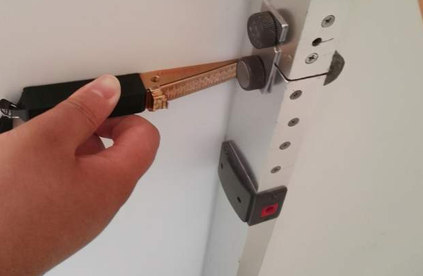5、将检测尺紧靠装修墙面。靠近墙面时需注意检测尺的方位。